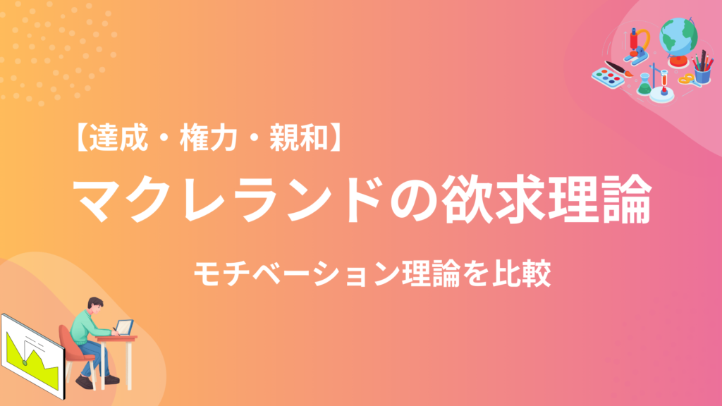 マクレランドの欲求理論とは、人の行動を動かす主要な動機が「達成欲求」「権力欲求」「親和欲求」の3種類に分類されるとしたものです。この理論の大きな特徴は、これらの欲求が生まれつきではなく、人生経験を通じて後天的に形成されると捉えた点にあります。